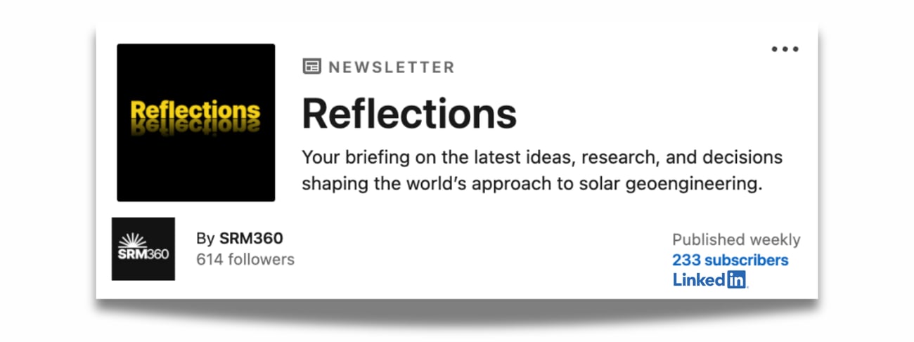 Reflections delivers our take on the week’s top solar geoengineering developments – the stories, insights, and questions that matter. Each edition is designed to spark discussion among our LinkedIn community about what’s shaping SRM today and what it could mean for tomorrow. Subscribe today to join the conversation. |