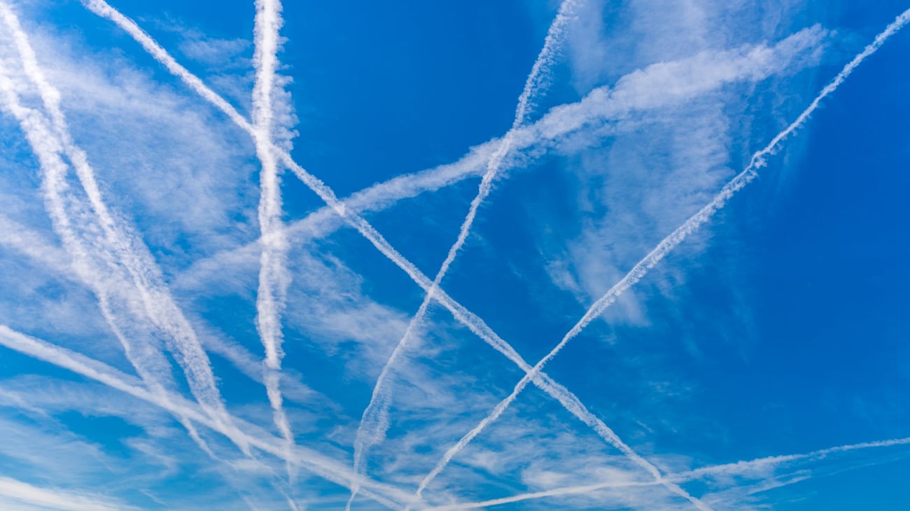 Contrails over blue sky. Photo Credit: Getty Images / Gajus |